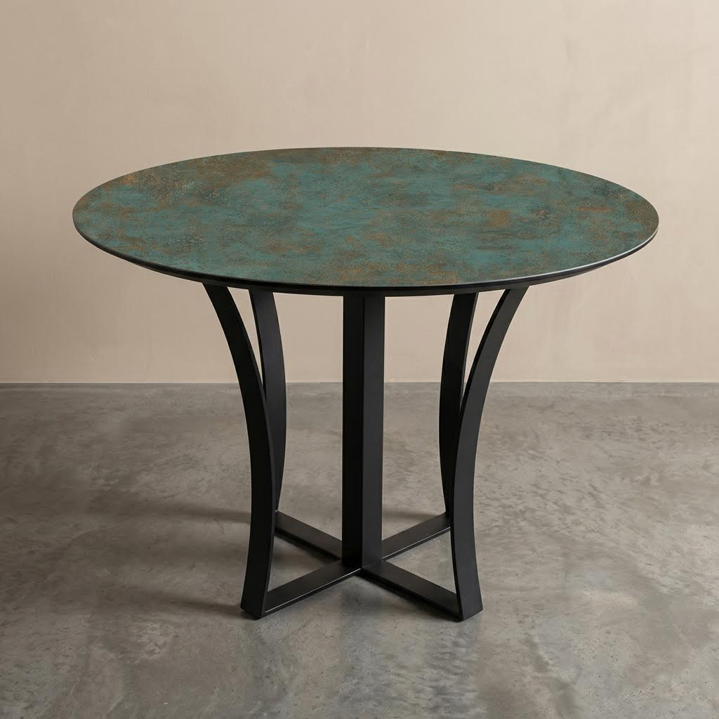 Стол Силуэт дизайнерский, столешница керамогранит, опоры металл