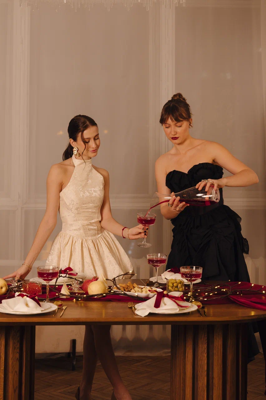 Мы соединили благородство классического стиля с драматичной эстетикой цвета. Бархатные ленты, льняные салфетки, фарфор с золотой каймой и сияющие акценты — каждый предмет говорит об изысканном вкусе. Это не просто посуда, а законченная декорация для вашего самого особенного праздника.